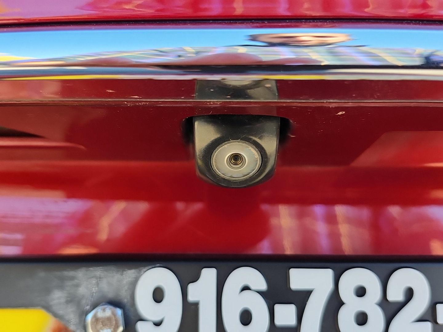 - The vehicle is equipped with a camera that displays an image of the area behind the vehicle on an interior display.